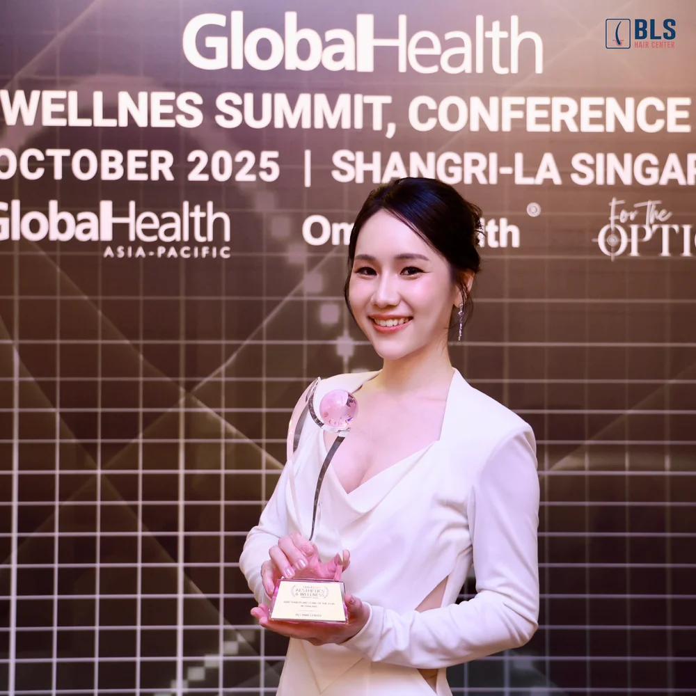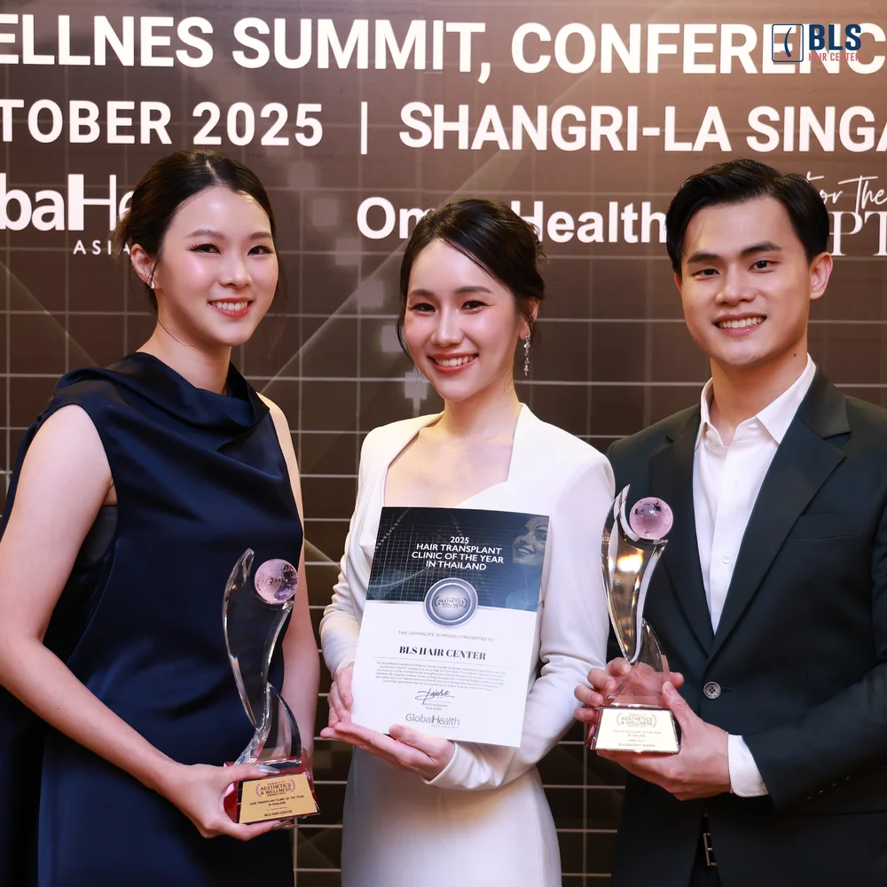 BLS Hair Center ได้รับรางวัล Hair transplant clinic of The Year in Thailand ระดับเอเชียแปซิฟิก GlobalHealth Asia Pacific Awards 2025 ที่ประเทศสิงคโปร์ เป็นรางวัลที่มอบให้แก่คลินิกปลูกผมที่มีผลงานโดดเด่นและได้มาตรฐานระดับภูมิภาค โดยรางวัลนี้มีเกณฑ์การคัดเลือกที่เข้มงวด ทั้งด้านเทคโนโลยีการรักษา ความพึงพอใจของผู้รับบริการ ความชำนาญของแพทย์ (Hair transplant surgeon) และผลลัพธ์ที่เห็นได้จริง โดยคณะกรรมการจากหลายประเทศในเอเชียได้ร่วมกันตัดสิน ทำให้รางวัลนี้ถือเป็นอีกก้าวของความสำเร็จสำหรับวงการปลูกผมของประเทศไทย การได้รับรางวัลระดับเอเชียนี้ไม่เพียงสะท้อนถึงคุณภาพ แต่ยังตอกย้ำว่าคลินิกปลูกผมของไทยสามารถก้าวสู่มาตรฐานสากลได้อย่างแท้จริง สำหรับคนไข้ที่กำลังมองหาว่าควร ปลูกผมที่ไหนดี? จึงมั่นใจได้ว่า BLS คือหนึ่งในคลินิกปลูกผมที่ดีเป็นอันดับต้นๆ ในประเทศไทย