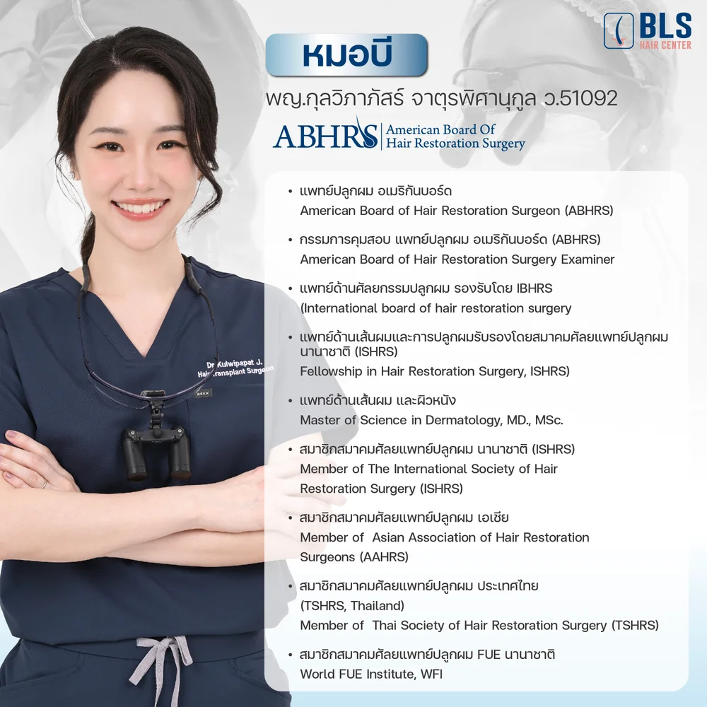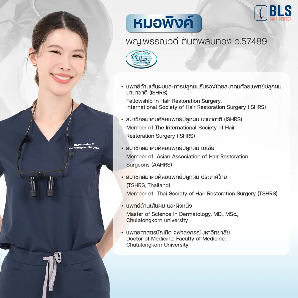 แพทย์ BLS Hair Center ผ่านการฝึกอบรมเทคนิคขั้นสูงจากในประเทศและต่างประเทศอย่างต่อเนื่อง เพื่อให้ทุกเคสได้ผลลัพธ์ที่ปลอดภัยและเป็นธรรมชาติที่สุด ทำให้ผู้เข้ารับบริการมั่นใจได้ว่าทุกกราฟต์ที่ปลูก ถูกออกแบบอย่างแม่นยำโดยแพทย์ปลูกผม